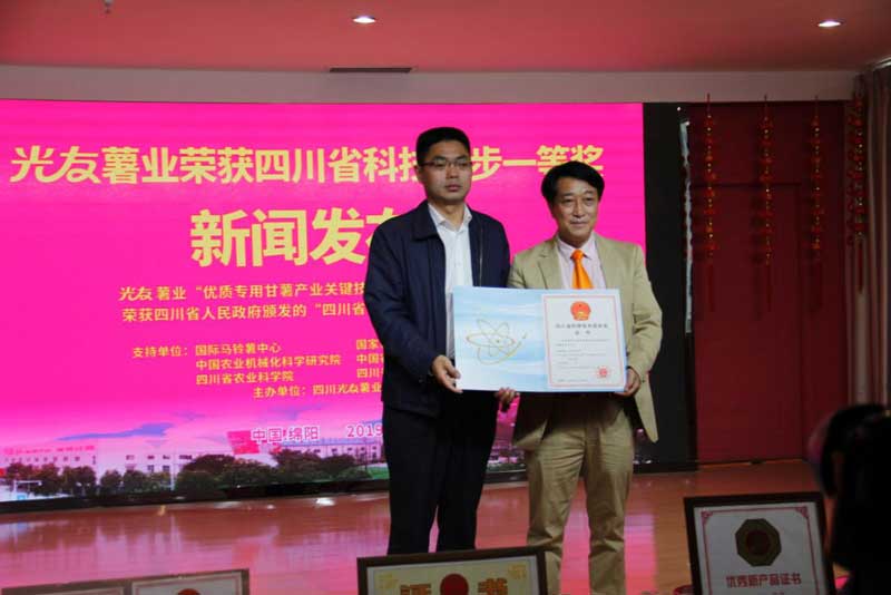 四川光友薯業(yè)有限公司(簡稱:光友薯業(yè))成立于1992年10月18日,是一家以薯類深加工為主的健康產(chǎn)業(yè)型、高新技術(shù)型民營企業(yè)。光友薯業(yè)自1992年來,不忘初心,專做薯業(yè),辛勤耕耘,在中國乃至世界把紅薯、馬鈴薯做成一大健康主食產(chǎn)業(yè),先后帶動薯區(qū)60萬薯農(nóng)脫貧致富,發(fā)展成為全球行業(yè)知名企業(yè)。連續(xù)九屆被國家八部委評定為“農(nóng)業(yè)產(chǎn)業(yè)化國家重點龍頭企業(yè)”,同時獲得“國家高新技術(shù)企業(yè)”、“全國主食加工業(yè)示范企業(yè)”、“全國馬鈴薯主食化產(chǎn)業(yè)十大領(lǐng)軍企業(yè)”、“全國守合同重信用企業(yè)” 、“推進甘薯產(chǎn)業(yè)發(fā)展突出貢獻獎”、“四川省科學(xué)技術(shù)進步獎一等獎”等殊榮。光友薯業(yè)獲中國專利70余項,光友方便粉絲獲得美國FDA認證,成為出口美國、日本免檢薯類健康主食。